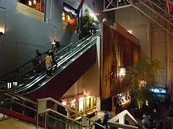 The theater was the first multiplex in San Francisco.[2] As part of the original Japan Center mission to showcase Japanese culture, it was the first authentic Kabuki theater in America, designed in a traditional 17th century style with a proscenium, stage entrance/exit ramp, revolving stage, and trap doors. The theater was designed with dining tables so audiences could eat while watching Kabuki performances. The restaurant, named the Kabuki Theater Restaurant, was limited to serving Chinese and American food so it wouldn't draw business away from the Japan Center Japanese restaurants.[3]