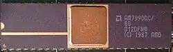 The Am7990 is an Ethernet media access controller (MAC) controller introduced in 1985.[1][2] LANCE, short for "local area network controller for Ethernet", is also the brand name for follow-up versions of the chip. Its architecture is the basis for AMD's PCnet family of highly integrated single-chip Ethernet controllers, which succeeded the LANCE family. The one exception is the Am79C940 MAC. The Am7990 chip was fabricated in NMOS technology and has no integrated Manchester encoder/decoder (ENDEC) nor does it have an integrated 10BASE-T transceiver.