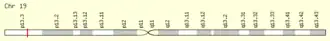 The gene is located on chromosome 19 at p13.3 on the forward strand.[10][11] The gene is 4041 base pairs in length and contains 29 exons.[9][12] The gene is neighbored by the gene SIRT6 that encodes for the Sirtuin-6 protein and the EBI3 gene that encodes for the Epstein-Barr virus induced gene 3 protein.[13]