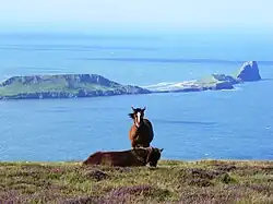 - Llŷn AONB (Welsh: AHNE Llŷn) – which spans 155 km2 (60 square miles) or around a quarter of the Llŷn Peninsula,[35] covering much of the coastline and the ex-volcanic hills. The peninsula extends 48 km (30 miles) into the Irish Sea from mainland north-west Wales, and south-west of the Isle of Anglesey. The AONB was created in 1956, and is one of the most scientifically important in both Wales and the United Kingdom.[36] 55 miles (89 km) of the AONB's coastline is Heritage coast.[37]