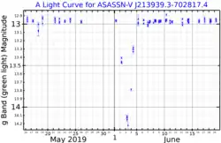 ASASSN-V J213939.3−702817.4 (also known as ASAS-SN-V J213939.3−702817.4 and J213939.3−702817.4) is a star, previously non-variable, found to be associated with an unusual, deep dimming event that was uncovered by the All Sky Automated Survey for SuperNovae (ASAS-SN) project, and first reported on 4 June 2019 in The Astronomer's Telegram.[2][3][4]