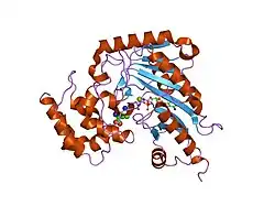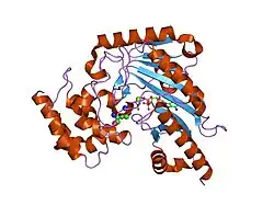 In molecular biology, the ATP:guanido phosphotransferase family is a family of structurally and functionally related enzymes,[1][2] that reversibly catalyse the transfer of phosphate between ATP and various phosphagens. The enzymes belonging to this family include: