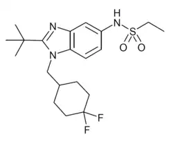 AZD-1940 is a drug developed by AstraZeneca, that is a peripherally selective cannabinoid agonist which binds with high affinity to both the CB1 and CB2 receptors. It was developed for the treatment of neuropathic pain, but while it showed good peripheral selectivity in animal studies,[1] in human clinical trials it failed to show sufficient analgesic efficacy and produced unexpectedly strong side effects associated with central cannabinoid activity, and so was discontinued from further development.[2][3]