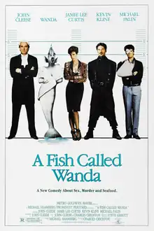 A Fish Called Wanda is a 1988 heist comedy film directed by Charles Crichton and written by Crichton and John Cleese. It stars Cleese, Jamie Lee Curtis, Kevin Kline, and Michael Palin. The film follows a gang of diamond thieves who double-cross one another to recover stolen diamonds hidden by their jailed leader. His barrister becomes a central figure – and jealousies rage – as femme fatale Wanda seduces him to locate the loot.