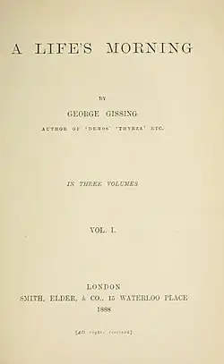 A Life's Morning is a novel by English author George Gissing.[1] Although written in the space of three months during 1886 it was first published, in serial form, beginning January 1888, in Cornhill Magazine[2] before being released by Smith, Elder & Co. as a novel.