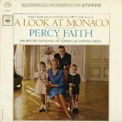 A Look at Monaco is a 1963 soundtrack album by Percy Faith and performed by the Orchestre National de l'Opera de Monte Carlo for the CBS television special and documentary A Look at Monaco.[1] The film featured a tour of the principal sites of Monaco conducted by the former American actress Grace Kelly, who had become the Princess Consort of Monaco following her 1956 marriage to Rainier III, Prince of Monaco.