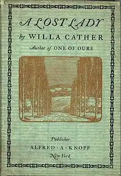 A Lost Lady is a 1923 novel by American writer Willa Cather. It tells the story of Marian Forrester and her husband, Captain Daniel Forrester, who live in the Western town of Sweet Water along the Transcontinental Railroad. Throughout the story, Marian—a wealthy married socialite—is pursued by a variety of suitors and her social decline mirrors the end of the American frontier.[1] The work had a significant influence on F. Scott Fitzgerald's 1925 novel, The Great Gatsby.[2]