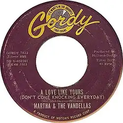 "A Love Like Yours (Don't Come Knocking Everyday)" is a 1963 song issued as the B-side to Motown singing group Martha and the Vandellas' hit single, "Heat Wave", released on the Gordy label.[1]