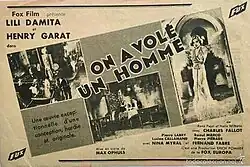 A Man Has Been Stolen (French: On a volé un homme) is a 1934 French comedy thriller film directed by Max Ophüls and starring Lili Damita, Henri Garat and Raoul Marco.[1]