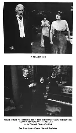 A Million Bid is a lost 1914 silent drama film produced by Vitagraph Company of America, directed by Ralph Ince and starred Anita Stewart. It is based on a stage play Agnes by Gladys Rankin (1874–1914). Later filmed by Vitagraph's successor, Warner Brothers, in 1927 starring Dolores Costello.[1][2]