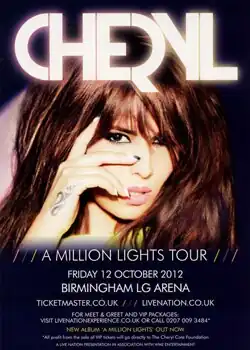 The A Millions Lights Tour was the debut concert tour by English recording artist Cheryl Cole. It promoted Cole's third studio album, A Million Lights. The tour marks Cole's first solo venture, touring extensively from 2005 to 2009 with pop group Girls Aloud. The show ran during October 2012, with 11 shows in the United Kingdom and Ireland.