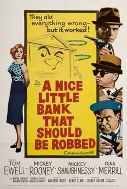 A Nice Little Bank That Should Be Robbed is a 1958 American comedy film directed by Henry Levin and written by Sydney Boehm. The film stars Tom Ewell, Mickey Rooney, Mickey Shaughnessy, Dina Merrill, Madge Kennedy and Frances Bavier. The film was released on December 1, 1958, by 20th Century-Fox.[1][2][3]