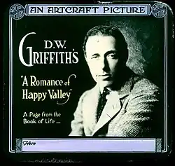 A Romance of Happy Valley is a 1919 American drama film directed by D. W. Griffith and starring Lillian Gish.[1] Believed lost for almost 50 years, a print was discovered in 1965 in the State Film Archives of the Soviet Union, which donated it to the Museum of Modern Art.[2]