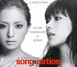 "A Song Is Born" was a collaboration between Ayumi Hamasaki and Keiko (Globe) for the Song Nation non-profit project by Avex, which was created to raise funds to help the victims of the 9/11 attacks on the World Trade Center.