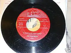 "A Thousand Miles Away" is a 1956 song recorded by the American doo-wop group The Heartbeats. The song was written by James Sheppard and William H. Miller.[3] The sequel, "Daddy's Home", also written by Sheppard and performed by his group Shep and the Limelites, was released in 1961. It did even better on the charts, reaching #2 on the US Billboard Hot 100.