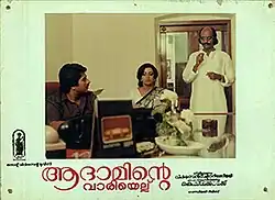 Adaminte Vaariyellu (transl. Adam's Rib) is a 1984 Indian Malayalam-language film directed by K. G. George, starring Mammootty, Srividya, Suhasini, and Soorya. The film addresses women's issues and is considered one of the best classics in the Malayalam film industry.[1][2]