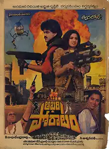 Aakhari Poratam (transl. Final Battle) is a 1988 Indian Telugu-language romantic action film written and directed by K. Raghavendra Rao based on the novel of the same name by Yandamuri Veerendranath. Produced by C. Aswini Dutt, it starred Nagarjuna, Sridevi and Suhasini with music composed by Ilaiyaraaja.[1] It was featured at the 12th IFFI Indian panorama mainstream section, and turned out to be a box office hit.[2]