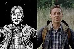 ![]() Aaron, as he appears in the comic book series (left) and as portrayed by Ross Marquand in the television series (right) | |