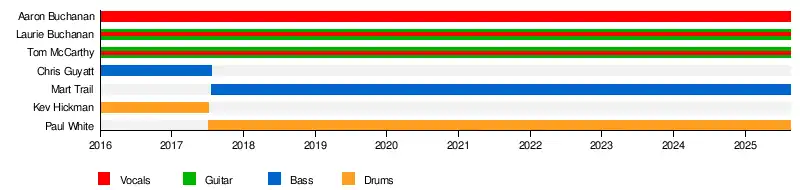 - Tom McCarthy – Guitar, Backing Vocals (2016–present)