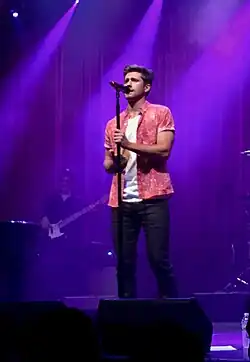 During Broadway's closure in 2020, Tveit filmed the movie One Royal Holiday, part of Hallmark Channel's Countdown to Christmas movie slate. Tveit starred opposite theater actresses Laura Osnes and Krystal Joy Brown.[79] Released in April 2021, Tveit was a cast member of Hit Job, a scripted comedy podcast produced by Lorne Michaels' Broadway Video for Audible.[80] That year he also appeared in two episodes of the horror anthology series American Horror Stories.[81] In 2021, he played Danny Bailey in the Apple TV+ musical comedy parody series Schmigadoon!;[82] in the show's second season he plays Topher, a young hippie seeking his purpose in life.[83][84] Tveit returned to Moulin Rouge! as Christian for 12 weeks beginning on January 17, 2023.[85]