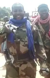 Following the outbreak of the Central African Republic Civil War he joined the Anti-balaka militias. In January 2014, he reportedly took over the Cantonnier/Béloko border crossing together with Rochael Mokom alias ‘Colonel Rocco’. On 28 April, he was reportedly in charge of Anti-balaka militias between Cantonnier and Bouar.[9] He was accused of murder of French journalist Camille Lepage in May 2014 for which he was arrested by Central African authorities.[10] On 7 July 2015, he escaped the Ngaragba prison in Bangui after which he fled to Garoua-Boulaï in Cameroon.[11] His personal lawyer, Raymond Ndakala, was accused of helping him in escape.[10] On 5 September 2015, he reportedly arrived in Berbérati accompanied by eight Anti-balaka fighters.[11]