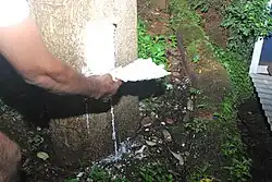 Traditionally, people of tulunadu used to clean the surroundings of paale mara the previous day of new moon day and tie the tree with rope dry banana leaves and keep a stone under the tree. So, they can identify the paale mara easily in the early morning and pray with the tree, "Hey divine Tree, you fill with the entire medicinal aspects tomorrow. Please bless with good health after having your bark/skin".[4] It also has divine status in this region. On aati amaase day, (the next day) before sunrise the bark/skin of the paale mara should be collected with the help of a stone and decoction prepared from it. The special care should be taken in the identification of the tree. Very outer skin(black coloured) is removed and inner white part is crushed by adding a little water, to make kashaya. The tree bark is grinded by using a stone.[5] And this ayurvedic concoction is prepared by mixing ingredients of pepper, turmeric, ajwain, garlic, and seeds into it. And scorch a pebble or iron bar and place in the decoction. After oblation to god and finally people intake the Kashaya. It tastes highly bitter, because it has ensemble medicinal contents. This juice is called Paaleda kashaya.[6]