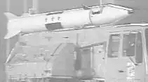 The Al Fat'h was a solid-propellant ballistic missile having a length of 6.7 m and a diameter of 0.5 m without, and 1.4 m with fins. It weighed 1200 kg, utilized a motor weighing 770–856 kg and could carry two types of warhead: a 260–300 kg unitary warhead, containing 160–170 kg of explosive, and a cluster warhead.[3] In the words of a UN inspector it was a "Badr-2000 Junior".[4] The airframe was made of 4 mm thick 30CrMoV9 steel sheet. The Ababil-100 launcher was an SM-90 launcher from the S-75 Dvina surface-to-air missile, mounted on the same chassis as the M-87 Orkan multiple rocket launcher, known in Iraq as Ababil-50. The unguided version of the Ababil-100 was simply fin stabilized. However, the guided version would use a complex system of actuators and canards, with an imported inertial guidance system. While the HE warhead of this missile was the same as that used in the Al-Samoud 2, the cluster warhead was filled with 850-900 KB-1 submunitions, which were also used in Ababil-50 rockets, and triggered by a barometric fuze. The submunitions would be dispersed at a height of 1.5-2 km, which was found to be too low. Due to the 2003 invasion of Iraq, the cluster warhead never was developed to a fully satisfactory standard. The missile's range was greater than 150 km. The Al-Fat'h system had a high failure rate with up to 30% of the missiles failing upon launch, and several suffered in-flight disintegrations.[3]