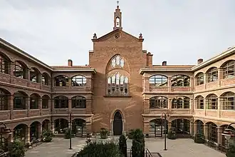 In 1900, part of the plot was segregated so that the architect Antoni Gaudí could build a residence for the industrialist Jaume Figueres, known as Torre Bellesguard. On the rest of the land, in 1925, the Oblates of the Most Holy Redeemer promoted a religious community for carrying out social work, built by the architect Bernardí Martorell thanks to the generosity of Francesca Balart. Martorell, a disciple of Gaudí, designed a church with hyperboloid vaults, which today serves as the Aula Magna / Aula Sacra.