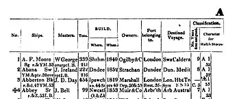 ![]() Extract of the Abbey (1853) Lloyd's Register of British and Foreign Shipping 1854 journal entry