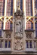 Work carried out in the 20th and 21st centuries included full cleaning of the stonework and the reconstruction of the pipe organ by Klais Orgelbau of Bonn. The west front of the building, having decayed badly in the 500 years since it was built, has been subject to almost wholesale restoration.[52] The stonework of the west front had been subject to natural erosion therefore a process of lime-based conservation was carried out during the 1990s by Nimbus Conservation under the guidance of Professor Robert Baker who had previously worked on the west front of Wells Cathedral. Some of the damage to sculptures had been made worse by the use of Portland cement by previous work carried out in the Victorian era. A statue of St Phillip was beyond repair and was removed and replaced with a modern statue by Laurence Tindall.[53]