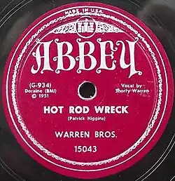 Abbey was founded by Pete Doraine[1] and originally operated in the Forest Hills, Queens, section of New York City but soon moved to 10th Avenue in the Manhattan borough in mid-1949 with Doraine serving as president.[2][3] In 1950 Abbey's experienced its first (and biggest) hit in a recording of The Old Piano Roll Blues by J. Lawrence Cook. This disc, catalog number 15003, reached a peak position of 13, and had staying power for eleven weeks.[4] Cook had recorded it in 1949, and then sold it to Abbey.[5] Billboard had reviewed this record in its "Billboard Picks" as "spontaneous" and "rollicking" with "guts and drive," and evidently the public agreed.[6] Abbey's next issue in the 15000-series was a Country hit. Slippin' Around With Jole Blon by Bud Messner and His Skyline Boys reached number 7 on the Country juke box charts in June 1950.[7] By mid-year they had again moved headquarters, this time to 49th street,[2] and had added two distributors to handle increased demand for their records.[8] The year 1951 saw another hit by Cook, although minor, a cover of Down Yonder (catalog number 15053) that placed a position #22 on Billboard's charts.[4] In 1951 the company located an operational nickelodeon in Richmond Hill, Queens on the advice of Cook, and signed a contract to record the machine. Because there was no extant rolls for the nickelodeon, Cook hand-produced rolls of two songs written specifically for the record.[3] Executive Don Reed left for Europe in the summer of 1951 to acquire recordings for issue in the LP format.[9] By 1952 Abbey was producing LP records, including a history of the newly crowned Queen Elizabeth II.[10] Not entirely content with standard sales channels, Abbey signed a deal with the Pacquin company to record songs subtly promoting a hand cream product without directly naming the brand.[11]