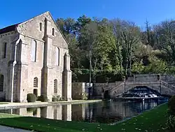The Abbey of Fontenay is a former Cistercian abbey located in the commune of Marmagne, near Montbard, in the département of Côte-d'Or in France. It was founded by Saint Bernard of Clairvaux in 1118, and built in the Romanesque style. It is one of the oldest and most complete Cistercian abbeys in Europe, and became a UNESCO World Heritage Site in 1981.[1] Of the original complex comprising church, dormitory, cloister, chapter house, caldarium, refectory, dovecote and the so-called "forge", all remain intact except the refectory and are well maintained. The Abbey of Fontenay, along with other Cistercian abbeys, forms a connecting link between Romanesque and Gothic architecture.