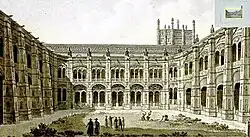 Ruins of a courtyard of Santa Engracia (1808-1813) by Italian Fernando Brambila and Spanish Juan Gálvez in their work Ruins of Zaragoza (artist book focused on the buildings that were ruined after the city's Napoleonic sieges)