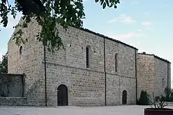 The abbey church was originally a single nave, but a reconstruction in 13th century changed it to three naves. The Romanesque bell tower is separate from the church and located in the monastery.[2]