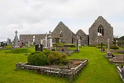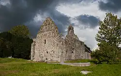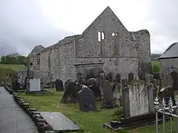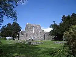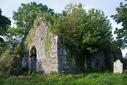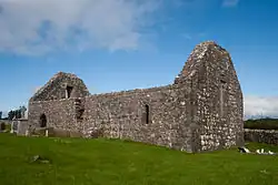 tradition of church now ruined belonging to Franciscan Friars purportedly founded by the sept of McFall (Macfaull) evidence lacking; also suggested as nuns or Dominican Friars |