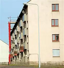 Lynburn Primary School is located on Nith Street near the centre of the estate, its catchment covers most of the area. It opened in the 1960s.[1] Pitcorthie Primary School, which opened in 1954,[2] was located on Aberdour Road to the south of the estate, it closed in July 2015.[3] Woodmill High School is on Shields Road in the north of the estate. It serves the east of Dunfermline, as well as the coastal villages of Charleston, Limekilns, and North Queensferry. St. Columba's R.C. High School, Dunfermline is just outside the estate on Woodmill Road. It is a Roman Catholic school serving the western half of Fife.