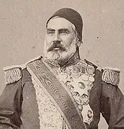 After five years in Vienna, he returned home in 1841,[1] and was appointed Chief of the General Staff in the rank of a colonel. With the support of the notables of the Tanzimat period, he rose in ranks in a short time. In 1846, he was promoted to the rank of a lieutenant general, and appointe as a member of the Military Council (Ottoman Turkish: Dâr-ı Şûrâ-yı Askerî) and Chief of the Military School (Ottoman Turkish: Mekâtib-i Askeriyye).[2]