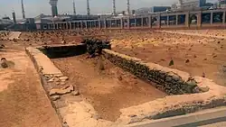 Together, the Ansar and Quraysh drove out the Umayyads from Medina, prompting Yazid to dispatch an army led by Muslim ibn Uqba to bring the city into submission.[1] The army, composed of the Arab tribesmen of Syria, took up strategic positions in the Harrah just east of Medina where they were met by the Ansar led by Abd Allah.[1] During the ensuing battle, the Ansar of Medina were defeated and Abd Allah was slain.[1] According to historians Ch. Pellat and K. V. Zettersteen, Abd Allah fought with "remarkable bravery ... but finally fell under the blows of the Syrians".[1] Eight of his sons were also slain.[5] His body was subsequently decapitated and his head was given to Ibn Uqba.[1] The two soldiers credited with his death were rewarded by Yazid.[1]