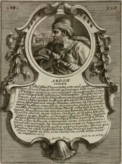 ![]() A portrait of Abdon a Judge of Israel from Bartolomeo Gai's Epitome historico-chronologica 1751 | |