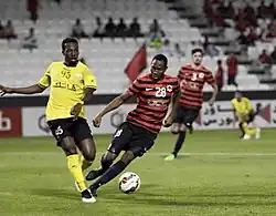 After his eye catching performance in Oman Professional League, he caught the eye of various clubs in the region and as a result moved to Saudi Arabia on 22 January 2016 where he moved on loan to Saudi Professional League side, Al-Khaleej on loan from Omani outfit, Al-Suwaiq Club.[12][13][14][15][16][17] He made his Saudi Professional League debut on 29 January 2016 in a 0-0 draw against Al-Fateh SC[18] at the Prince Abdullah bin Jalawi Stadium and scored his first goal on 10 February 2016 in a 1-2 loss against Saudi giants, Al-Shabab FC.[19]