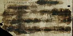 Under a heading ABECEDARIUM NORD, the manuscript presents the Younger Futhark in three lines. Linguistically, the text is a mixture of Old Norse, Old Saxon and Old High German. It is probably based on a Danish original, maybe imported from Haithabu to Lower Germany, and adapted to the idiom of its recipients. The background of the Carolingian notation of Norse runes is that of intensified contacts between the Frankish Empire and Denmark which necessitated interpreters for economic and political exchanges.