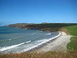 Abermawr is a stretch of coastline and is regarded as a Site of Special Scientific Interest in Pembrokeshire, Wales. Abermawr is a mostly shingle beach with marsh and woodland behind it. It is popular with many walkers who are walking along the coast past Porthgain, Abereiddi and Abercastle. The large pebble bank of the bay was created by a storm on 25 October 1859. The currents at Abermawr can be hazardous but the headlands are low so are less gusty.