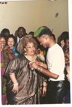 In 1988, with the support of her international fan club led by Berthrand Nguyen Matoko, Masikini performed at the Zénith de Paris in front of 5,000 people on 24 September.[12][22][50] The performance featured several guest artists, including Bernard Lavilliers, Manu Dibango, Nzongo Soul, Pépé Kallé, Seba, Aurlus Mabélé, and François Lougah, and was broadcast live on Radio France Internationale.[12][41] The success of this show led to a contract with the multinational record company Polygram.[12] In 1989, Masikini toured China, delivering 17 galas alongside Zhu Mingying in the country's major cities. She later performed at the Apollo Theater in Harlem.[51][22][12]