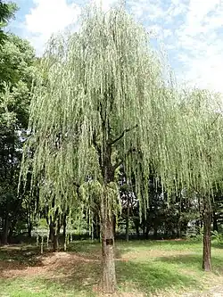 Custis then planted the twig at Abingdon. The resulting tree reportedly became the progenitor of all of the weeping willows growing in the United States at the time of the accounts.[5]