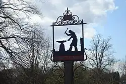 The clock which overhangs the main road portrays the figure of "Jack the Blacksmith", who strikes the hour with his hammer. The clock bears the motto "By me you know how fast to go". The clock was given in memory of the first Lord Farrer of Abinger Hall who died in 1899. The clock represents the iron industry and the role played by the county of Surrey in the industrial past.[4]