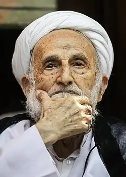 Ayatollah Abolghasem Khazali Boroujerdi (Persian: ابوالقاسم خزعلی بروجردی, 21 March 1925 – 16 September 2015) was a hardline Iranian politician, fundamentalist Shi'i cleric and a founding member of Haghani school with close ties with Mahmoud Ahmadinejad and Saeed Jalili. He was the conservative chairman of the Guardian Council, and was the oldest member of the current Assembly of Experts.[2][3] Before the Islamic Revolution, he was one of the strongest challengers of the Shah, and was taken to jail several times. He died on 16 September 2015.[4]