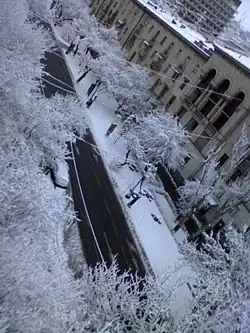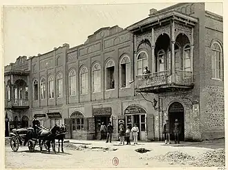 The street was officially called Astafyevskaya (Russian: Астафьевская улица), but the residents of Yerevan called it in their way – changing the suffix "-yevskaya" to "-yan". That was the main reason why it was known as Astafyan (Armenian: Աստաֆյան փողոց), not Astafyevskaya. In 1904, the horsecar system began to be constructed on Abovyan Street and was completed in 1906. It only operated 12 years, until 1918. The first tram in Yerevan passed on Abovyan Street in 1933.[5] In 1920, at the start of the Soviet era, the street was renamed Abovyan street in honor of the father of modern Armenian literature.[6][2] Numerous historical buildings stand on Abovyan street which quickly became well known in the city as the residence of famous people, celebrities, and politicians of Yerevan.[7]