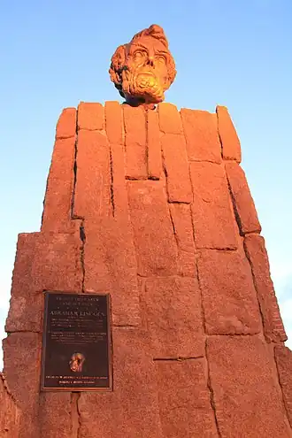 The Lincoln Monument is a bust of Abraham Lincoln by Robert Russin, 12+1⁄2 feet (3.8 m) high and resting on a 30-foot-tall (9.1 m) granite pedestal,[1] at the Summit Rest Area on Interstate 80 east of Laramie, Wyoming. Russin originally erected the sculpture in 1959 nearby on Sherman Hill, overlooking the old U.S. Highway 30 (Lincoln Highway).[2] In 1969, after Interstate 80 was built, state officials moved the monument to become a centerpiece at the Summit Rest Area and Visitor Center between the cities of Cheyenne and Laramie.[1]