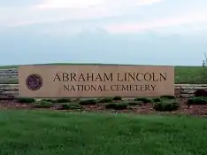 The Abraham Lincoln National Cemetery is an American military cemetery that covers 982 acres (397 ha) in Elwood, Illinois. It is located approximately 50 miles (80 km) southwest of Chicago, Illinois. When fully completed, it will provide 400,000 burial spaces.
