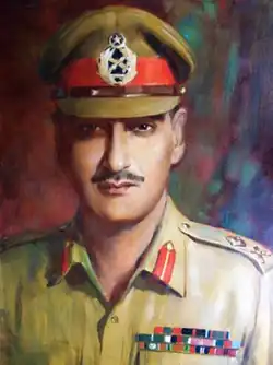He was promoted to Brigadier in 1956. As Military Secretary from 1958 to 1964, he was also President of the Army Reforms Committee. Promoted to Major General in 1964, he was given the task of converting 100 (Independent) Armoured Brigade Group into the 6 Armoured Division. The fact that he was an infantry officer and yet had been entrusted with the raising of an armoured formation, speaks volumes of the esteem in which he was held by the Army High Command. He would soon vindicate that confidence in the coming war with India. The 6 Armoured Division was still a paper formation without a division's normal complement of fighting or supporting elements. There were only two armoured regiments and one infantry battalion, while there were no integral brigade headquarters in the division.[5]